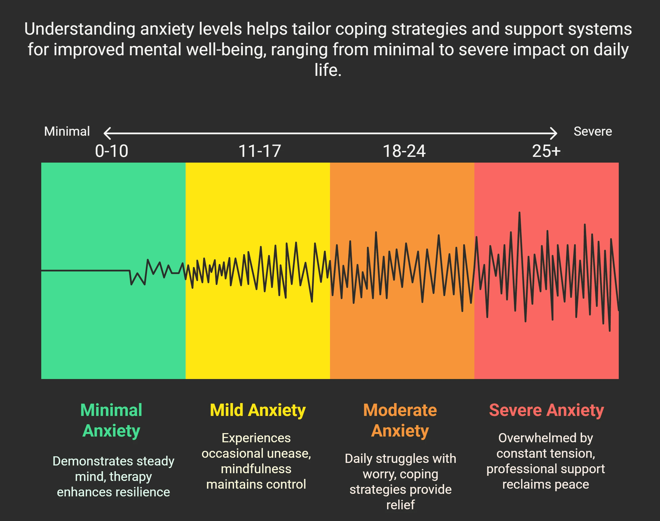 Anxiety isn’t just about fear or worry - it’s the weight on your chest, the racing thoughts at night, the moments of doubt when everything feels too much. No matter what your total came out to be, you are not alone, and support is within reach.