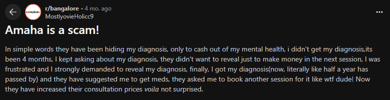 Transparency Concerns – Online discussions suggest Amaha may withhold ADHD diagnoses for future sessions, potentially increasing costs.