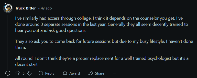 Therapist Credentials: Always check that your therapist has a master's degree in psychology or higher. Some platforms may list therapists without the proper qualifications, so verifying their credentials is crucial.