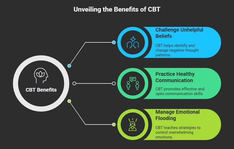CBT helps you catch those mental spirals before they derail your relationships. It works on the premise that our thoughts shape how we feel and act.