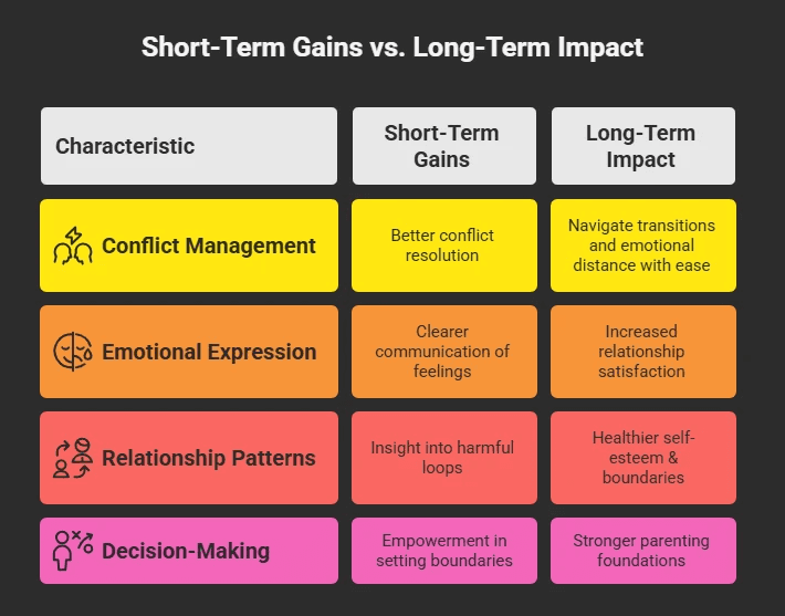 Even transitions like parenthood, relocation, or job changes can shake a relationship’s foundation. A study found that therapeutic support during early parenthood improved both emotional wellbeing and co-parenting connection - proof that even life’s natural stages benefit from guided emotional processing.