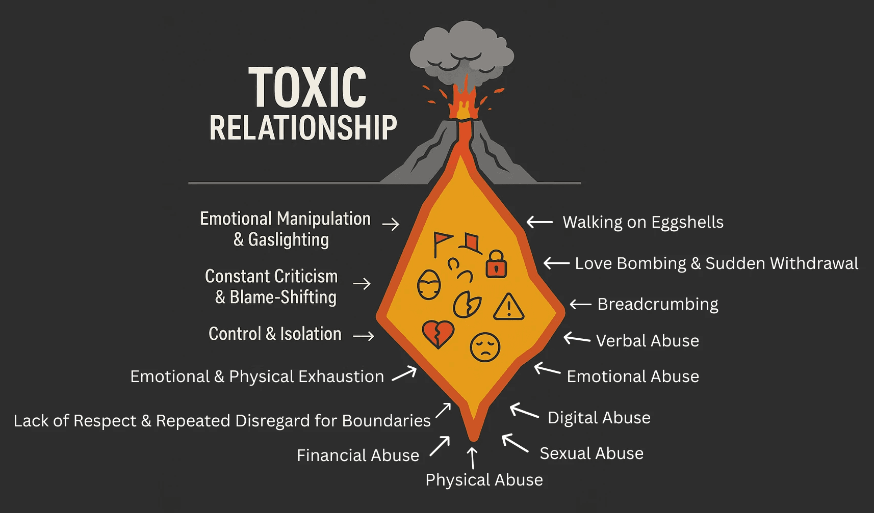 Toxic relationships are not always explosive - they’re often quiet, consistent drains on your emotional and psychological well-being. Recognizing the patterns is essential to breaking free from the cycle of harm. Below are the key signs that a relationship - whether romantic, familial, or platonic - may be toxic: