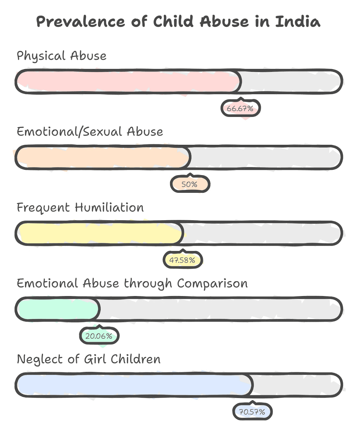 In India, a National Study on Child Abuse conducted by the Ministry of Women and Child Development - in partnership with UNICEF, Save the Children, and Prayas - uncovered some heartbreaking truths. The study covered 13 Indian states and surveyed 12,447 children across various age groups.