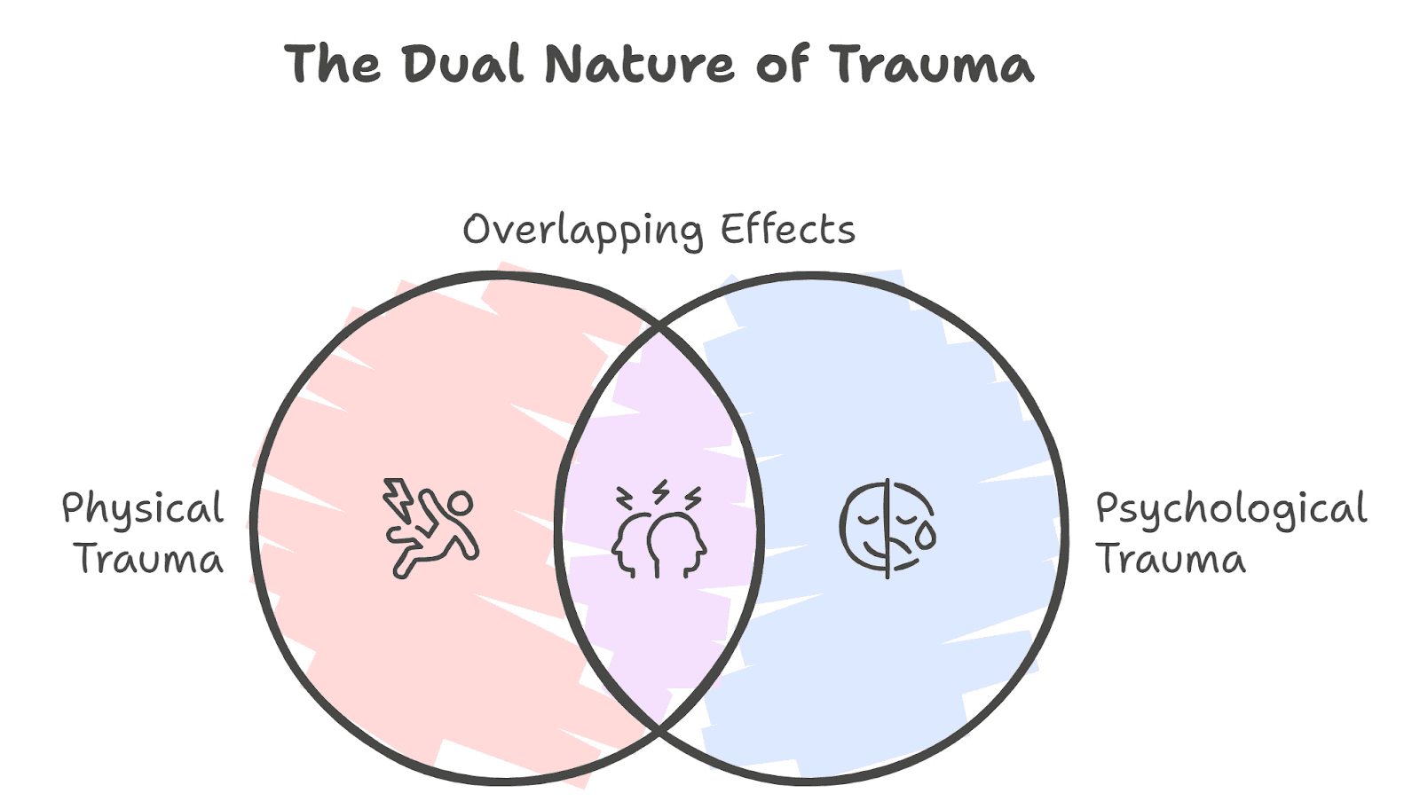 Many people who experience physical trauma also face psychological consequences, as the mind struggles to make sense of the event. Think of the fear after a car accident, or the emotional toll of a serious illness - trauma isn’t just about bruises or scars, it’s about what stays with you afterward.